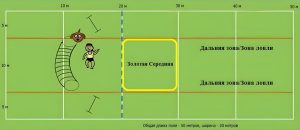 - Балловые зоны и размеры поля изображены на рисунке.